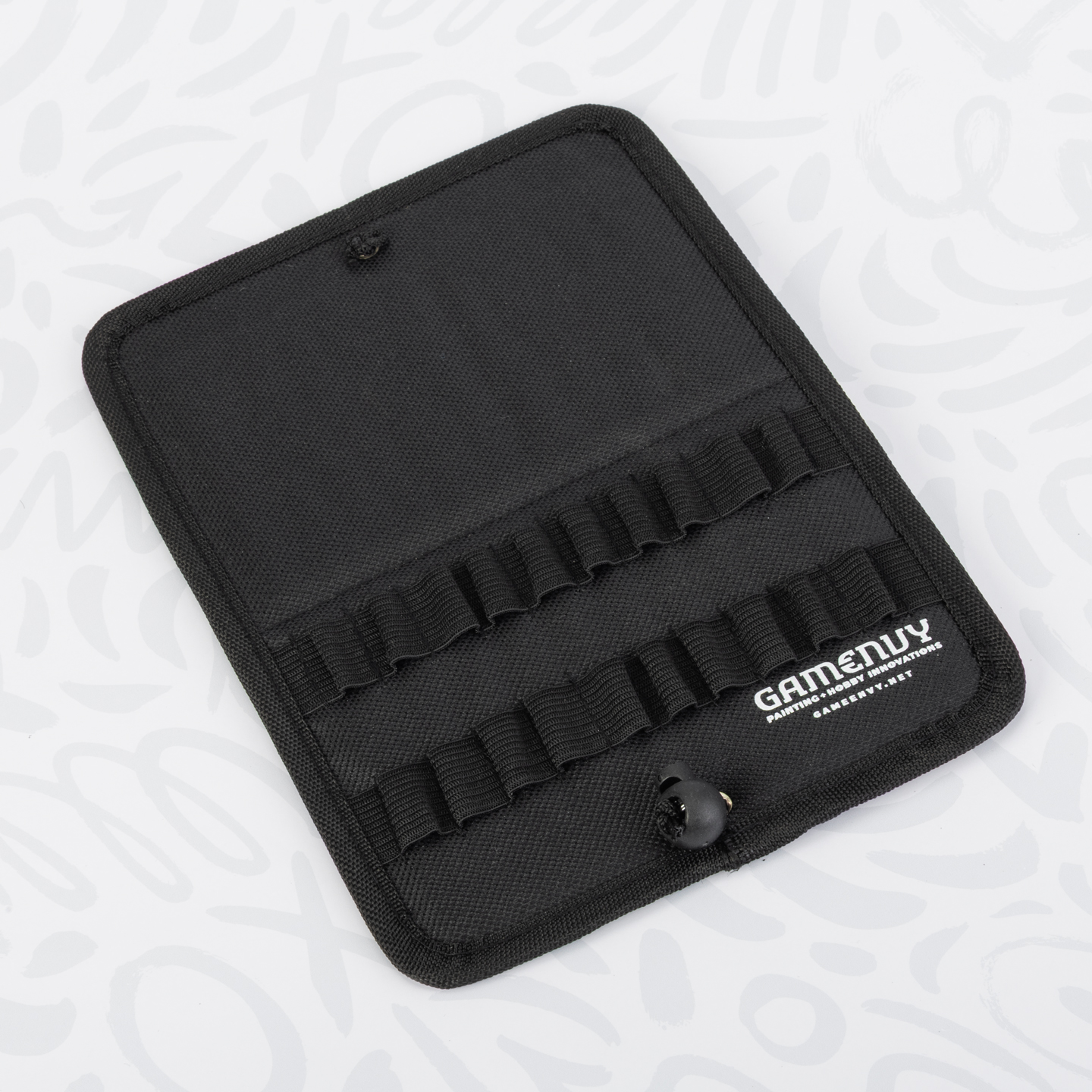 The Game Envy Folding Brush Stand + Travel Holder can keep up to 10 brushes secure and organized on your desk and on the go.
