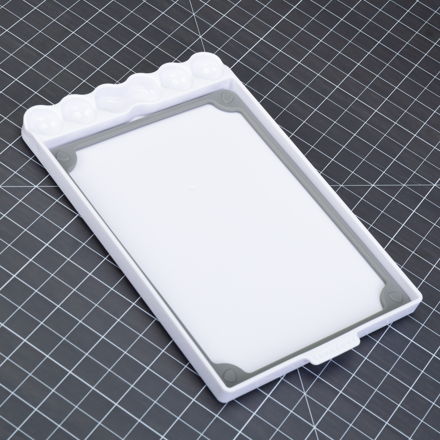 **This “Tray Only” options does not include any paper or sponges** The QUICK features a 160mm x 120mm (6.3″ x 4.7″) wet palette area, a silicone paper weight and an integrated mixing tray with 5 wells and a brush rest. Game Envy’s QUICK Wet + Dry Palette stacks perfectly with other QUICK palettes for easy setup, transportation, storage and to protect your paints from ornery cats if you need to grab a snack ;D