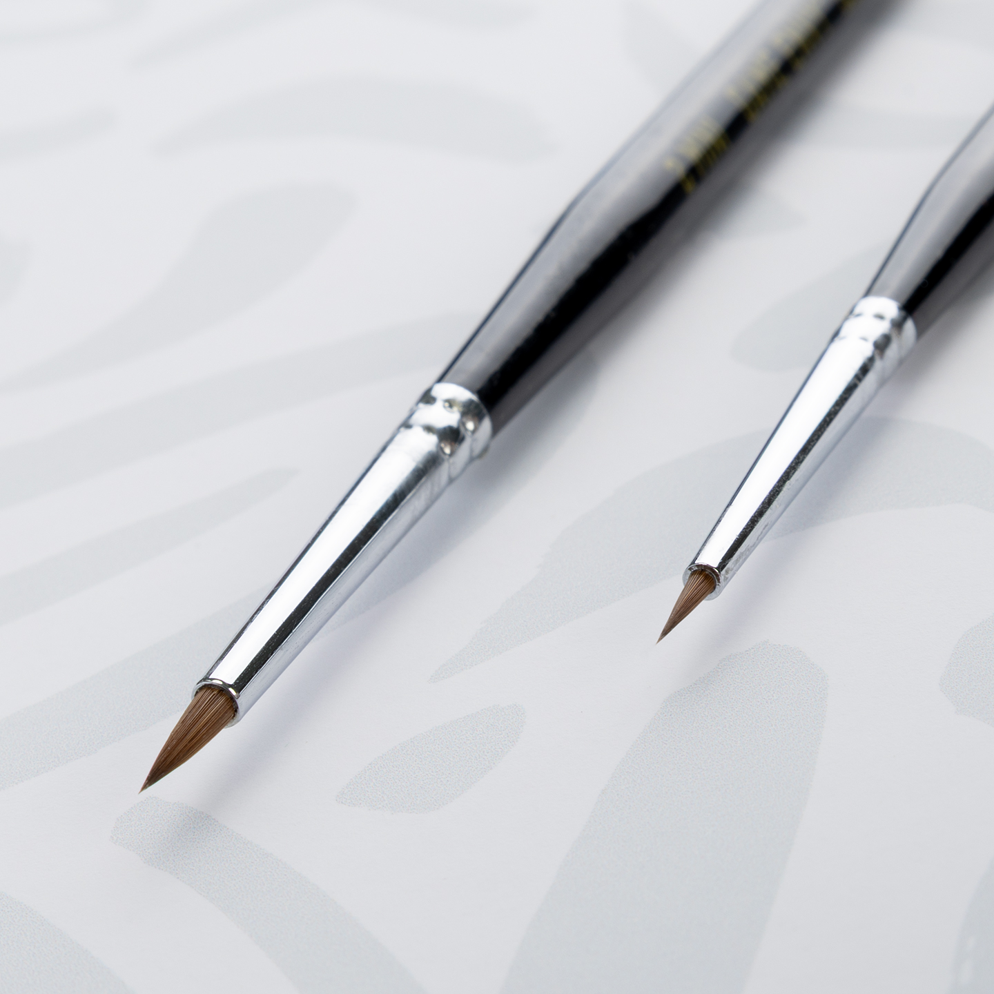 The short, densely packed bristles offer a stiffer brush with exceptional control, while still holding ample paint to stay in the zone. Available in here in a 2-pack containing a #0 MINI and #2 MINI, they’re ready for everything from micro-details to controlled color work. Stock up on single sizes here!