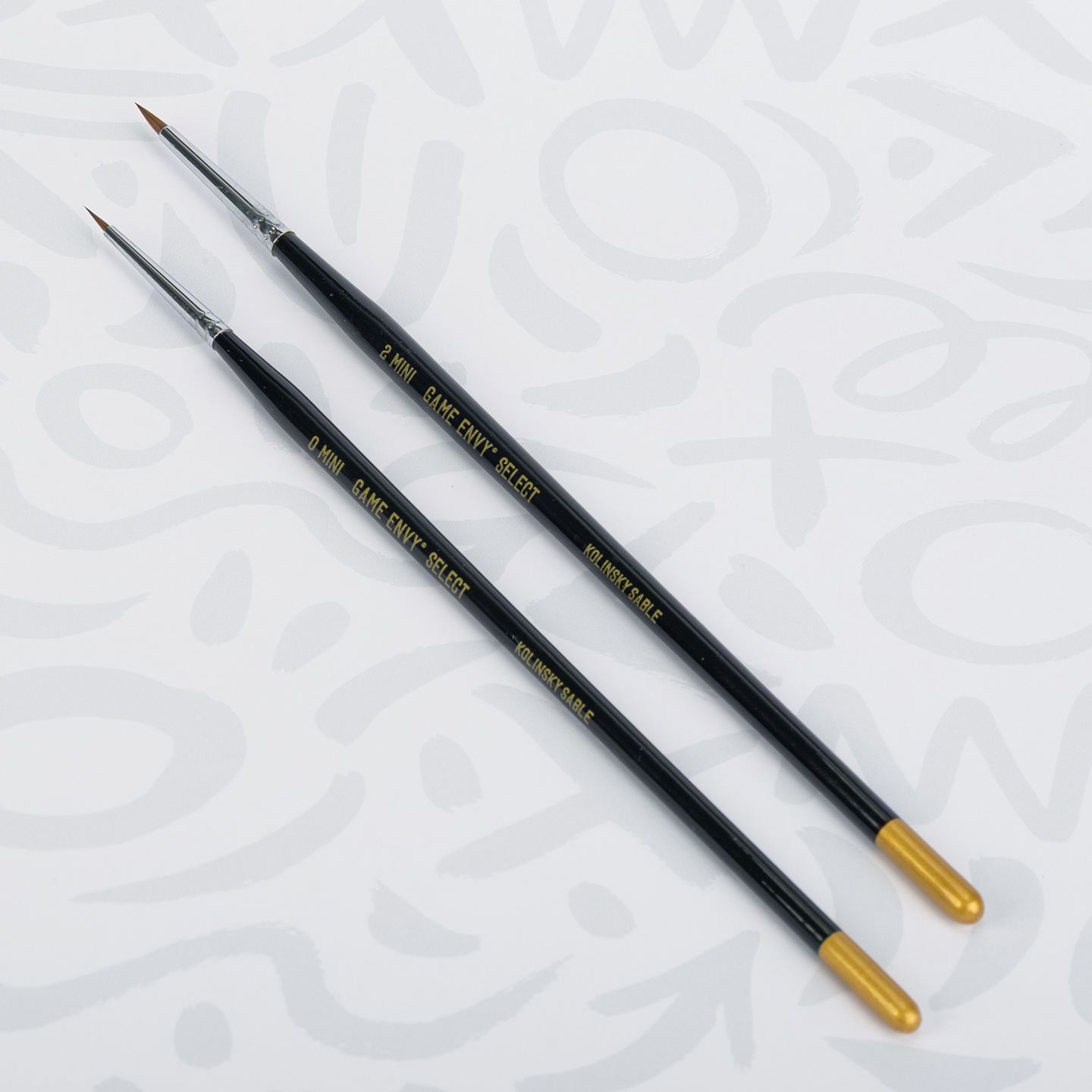 Introducing the newest addition to the Game Envy SELECT Fine Kolinsky Sable brush range—the Game Envy SELECT MINI Sable Brushes! These spotter/miniature style brushes are the same renowned quality and affordable sables you love, in a short, fine-pointed design for maximum precision and control.